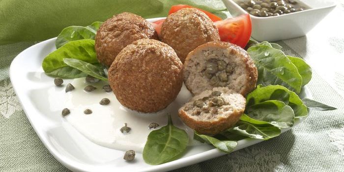 - Knead ground beef with egg, bread crumbs, salt, pepper and form meatballs filling them with capers, fry until browned and cooked inside.