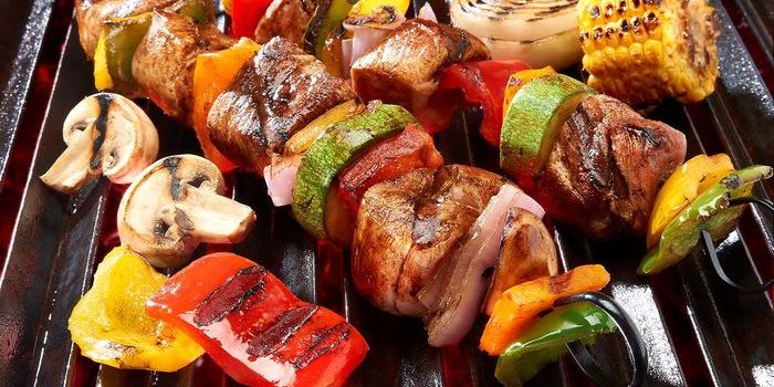- Make each skew alternating the ingredients and roast on the grill until meat is golden brown.
