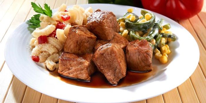 - Pan fry beef cubes and onion with a tablespoon of oil in the pan.
