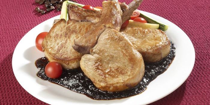 - Serve the chops and serve with the sauce and slices of pumpkin sautéed in butter.