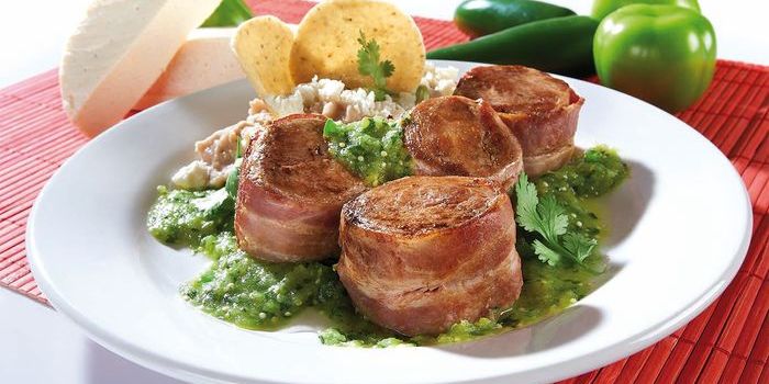 - Serve sauce and lay cuts on top garnishing with bays refried beans, sprinkle with cheese