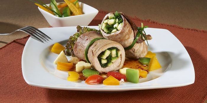 Breaded Pork Roll Stuffed with Spinach and Pumpkin Sauteed in Olive Oil