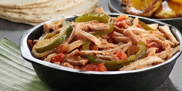 - 1 kg de carne de cerdo cocida y deshebrada (lomo o pierna)