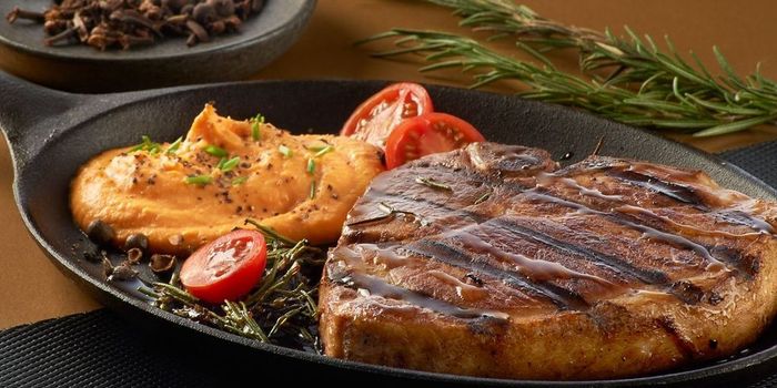 T-Bone a la parrilla ahumado al romero con puré de camote