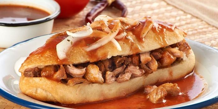 - Pica las carnitas y dóralas. Parte los panes a la mitad y rellénalos con la carne.